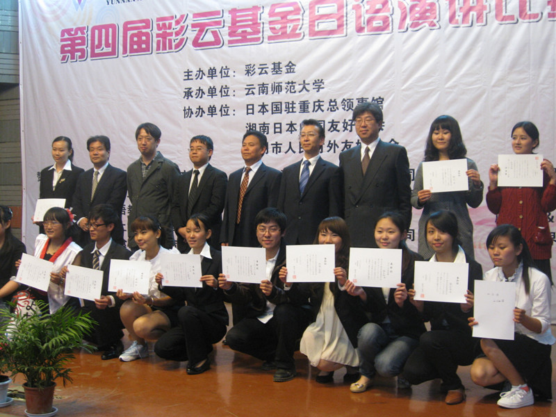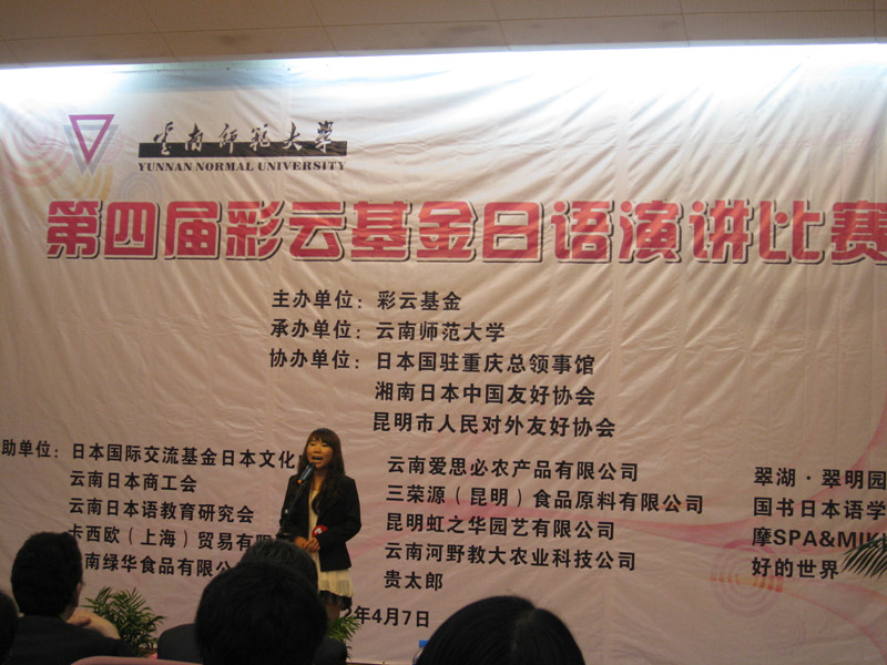 2012年4月7日,“云南省第四届彩云基金日语演讲比赛”在云南师范大学呈贡校区隆重举行。初赛选拔赛中我院有两名选手胜出:分别是09级选手张荣东旭和10级选手欧阳小青。在演讲比赛当日,经过激烈地角逐,我院张荣东旭同学凭借其清新流畅的日语口语、自然大方的演讲表现,在众多优秀选手中脱颖而出,在即兴演讲部分出色地发挥,最终获得评审委员会的特别奖项“最具幽默奖”,欧阳小青同学则获得本次大赛的“优秀奖”。这是连续三年参加彩云基金演讲比赛以来,我院选手首次荣膺特别奖项。两位同学的优异表现为beat365赢得了荣誉,不但展现了我院学生,特别是日语专业学生积极向上的良好精神面貌,而且从另一个侧面反映出学院综合办学能力与竞争力的提升,同时也说明了外语学院专业建设正日趋完善,办学优势的日益明显化。