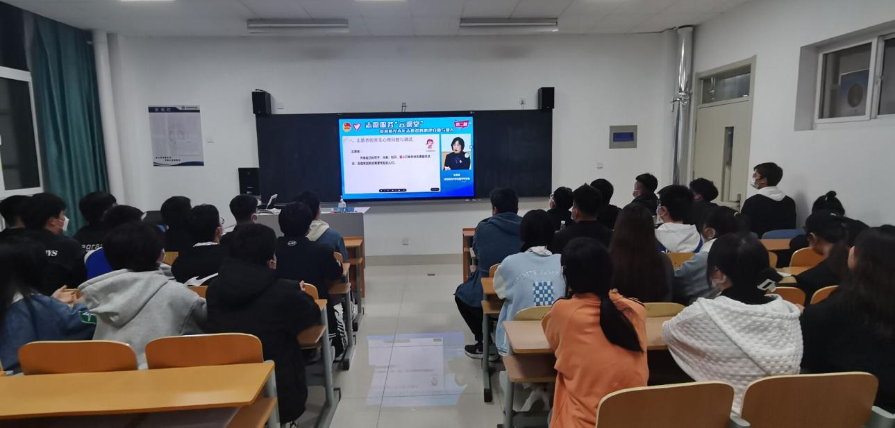 2022年3月29日7:30,PP电子游戏网站组织志愿者在教室集体观看了《疫情防控青年志愿者的心理自助与助人》直播课。