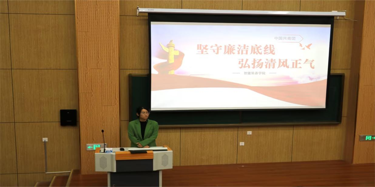 PP电子游戏网站团总支及各个班级团支部召开廉洁自律主题团日会议,团总支书记缪梦雨强调作为一名团员,应当做好坚守廉洁底线,弘扬清风正气,做一名合格的团员。