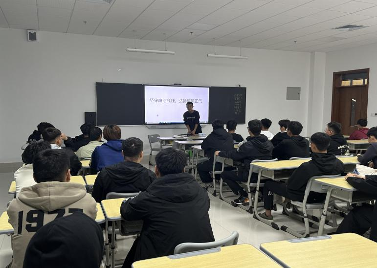 各团支部积极开展“坚守廉洁底线,弘扬清风正气”主题班会,使同学们树立“廉洁光荣,腐败可耻”的意识和反腐败斗争必胜的信心,培养正确、积极、健康的理想信念、道德观念、法制意识和社会责任。