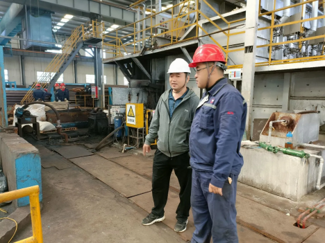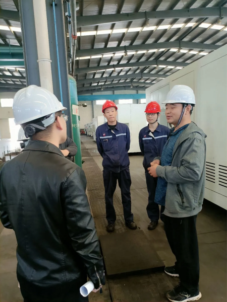 李福玉老师到车间指导日常如何进行机床维修维护,并为企业员工进行焊工技能评定。