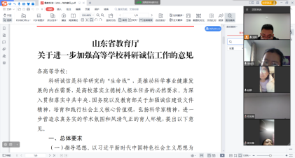 PP电子游戏网站在疫情当下,以教研室为单位,积极组织老师们进行线上学习山东省《关于进一步加强高等学校科研诚信工作的意见》(鲁教科发〔2022〕3 号),开展科研诚信专项整治活动。截至12月9日,PP电子共签订科研诚信承诺书33份,进行论文自查72篇,均未出现涉及违反学术规范等问题。