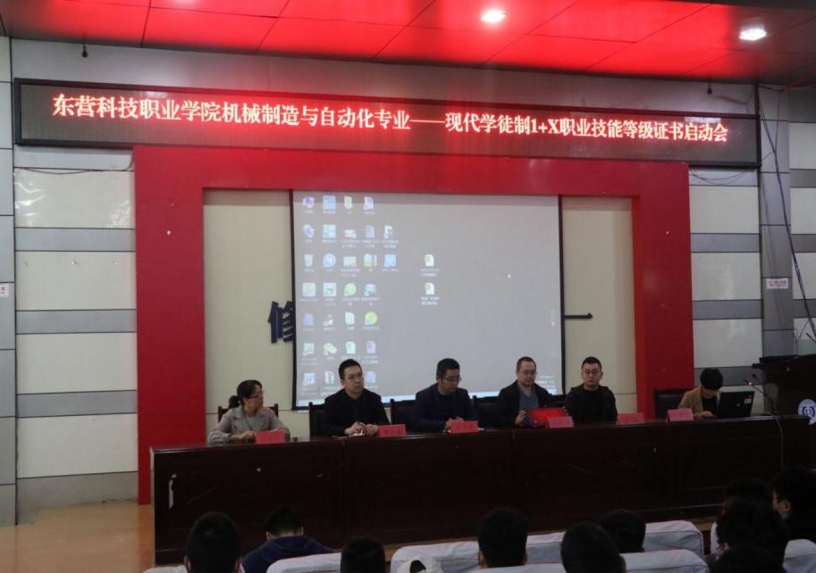 2020年10月27日下午4点,PP电子游戏网站机械制造与自动化专业——现代学徒制1+X职业技能等级证书启动会在PP电子一号报告厅举行。机电工程学院安丰金院长、朱建平老师、高艳云老师,烟台胜信科技,股份有限公司经理葛鹏、工程师王伟林,山东威玛石油有限公司人事总经理唐显骏,参加了此次启动会。