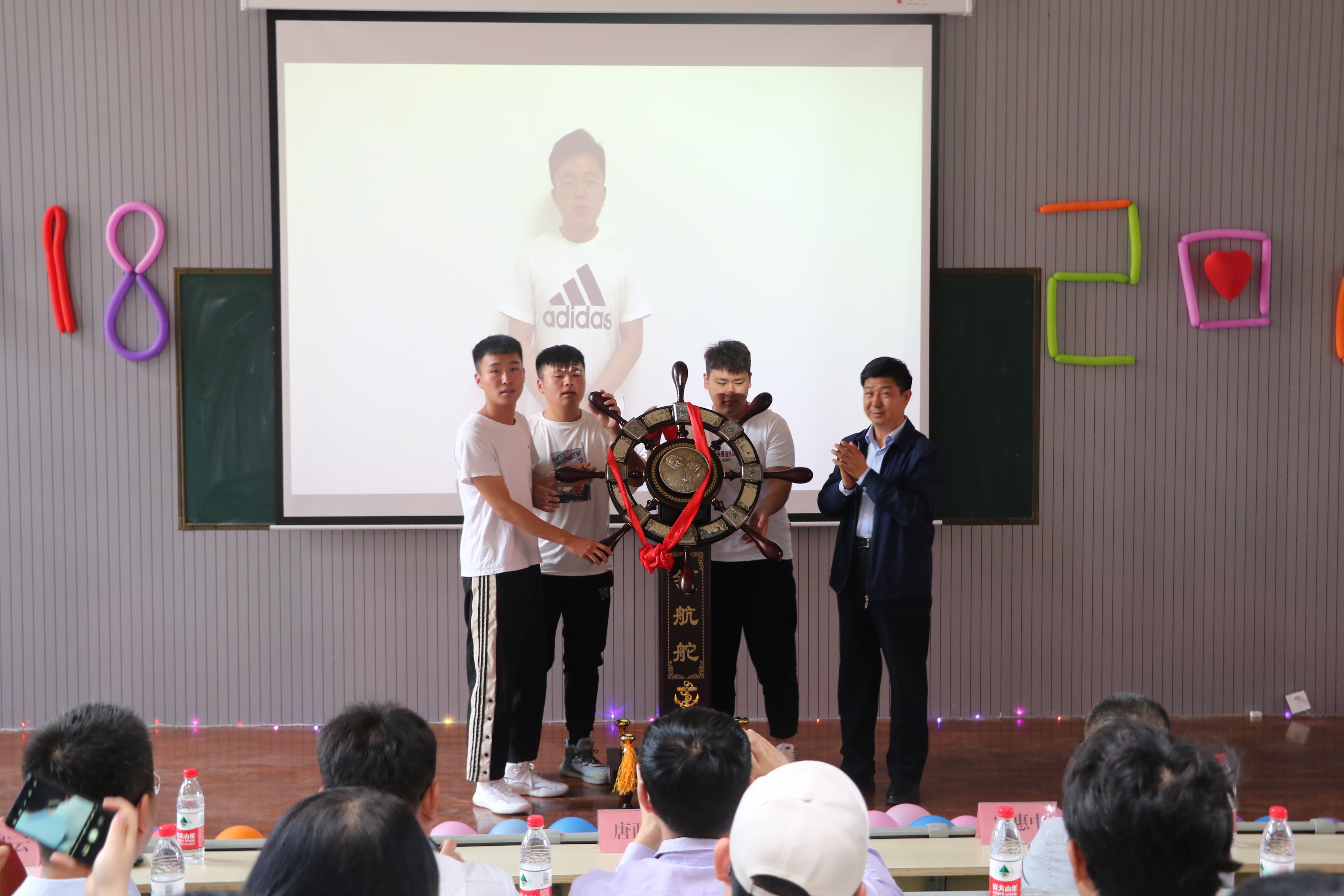 典礼上,PP电子游戏网站给2021届毕业生赠送纪念品——印章,希望同学们能坚守诚信品质,坚守做人做事的道德底线,真诚做人、守信做事,让诚信成为不懈追求和自觉行动,充盈工作学习生活的各个空间。而2021届毕业生也同样为母校献上了一份精心准备的纪念品——领航舵, 表达对母校的祝福和承诺,祝愿母校扬帆起航。唐西光校长代表学校接受纪念品。