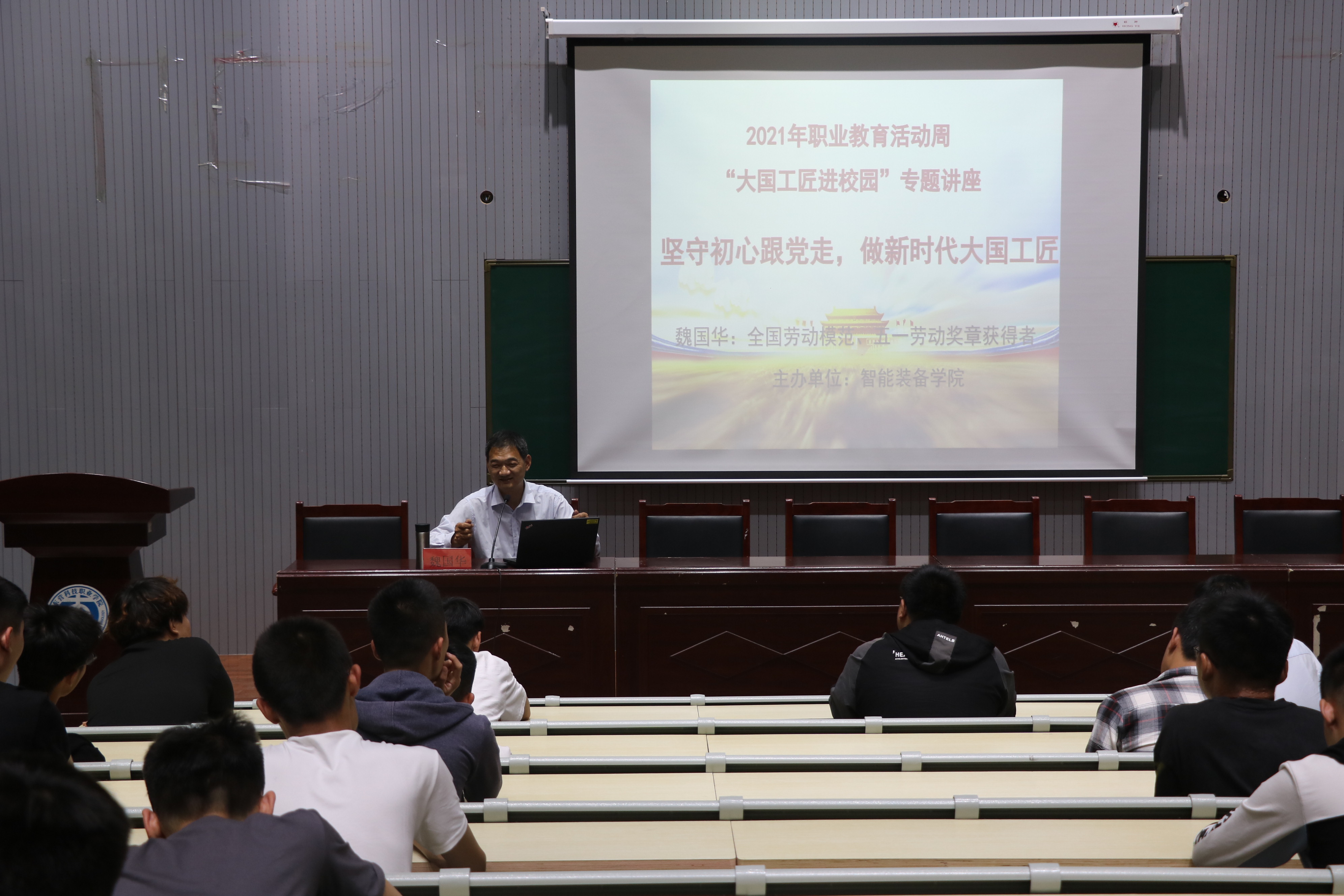 6月1日,PP电子游戏网站邀请“全国劳模,五一劳动奖章获得者”魏国华给师生作“坚守初心跟党走、做新时代大国工匠”的主题报告会。