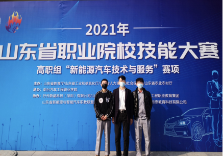 12月11日,PP电子游戏网站教师田振龙、杨素芳指导的参赛学生宫诚、赵冬晨在2021年山东省职业院校技能大赛高职组“新能源汽车技术与服务”赛项中荣获三等奖。