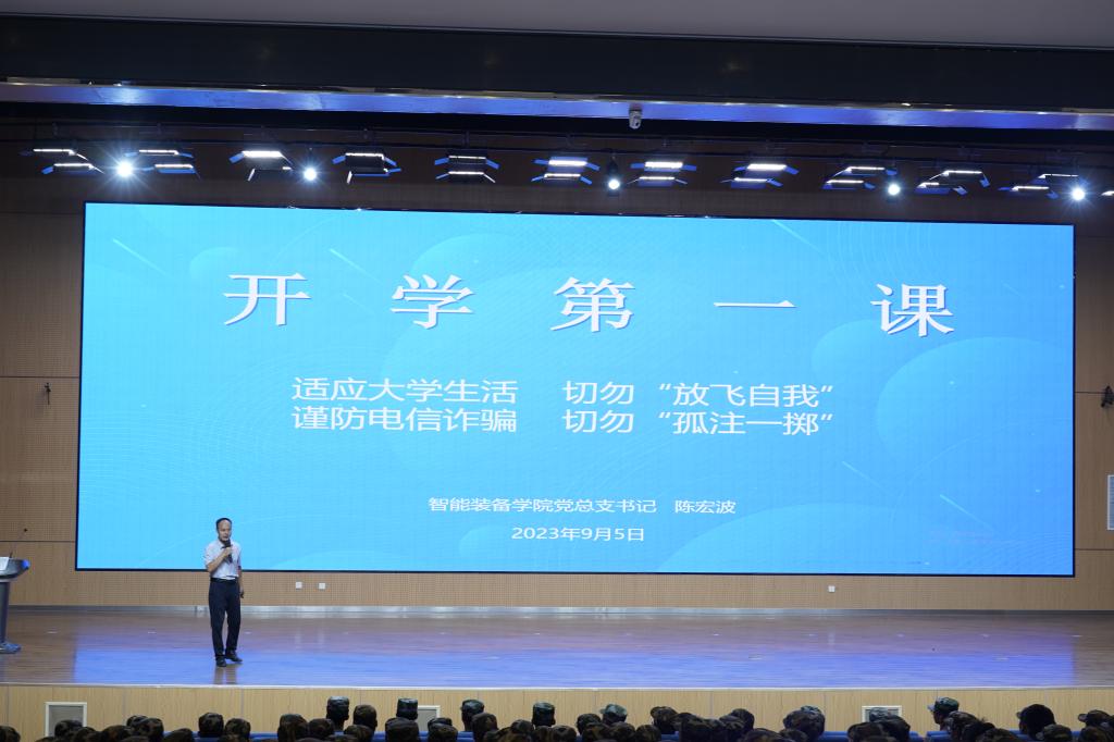 2023年9月5日晚,PP电子在图书楼一楼报告厅,开展“开学第一课”讲座,讲座由党总支书记陈宏波老师主讲,全体2023级大一新生参加。